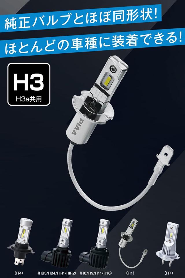 ヘッド&フォグ用 LEDバルブ H3/H3a 純白光 6000K コントローラーレス 2500lm 12V 11W PIAA LEH264