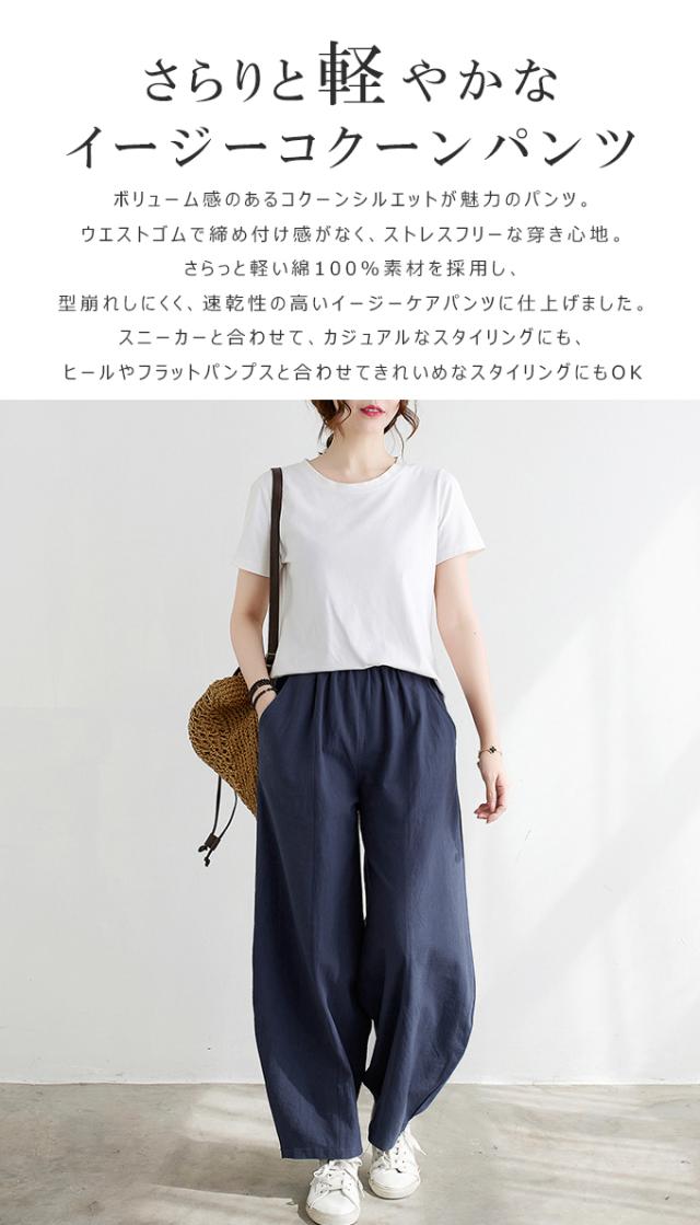 さらりと軽やかなイージーコクーンパンツ ボリューム感のあるコクーンシルエットが魅力のパンツ。 ウエストゴムで締め付け感がなく、ストレスフリーな穿き心地。 さらっと軽い綿100%素材を採用し、 型崩れしにくく、速乾性の高いイージーケアパンツに仕上げました。 スニーカーと合わせて、カジュアルなスタイリングにも、 ヒールやフラットパンプスと合わせてきれいめなスタイリングにもOK ※モニター環境により多少色合いが異なりますので、予めご了承くださいませ |