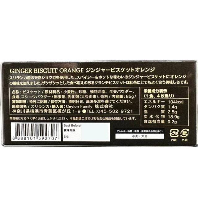 | 商品名 | ジンジャービスケット オレンジ 85g(15枚)x4箱 スリランカ 生姜 クッキー セイロンファミリー |