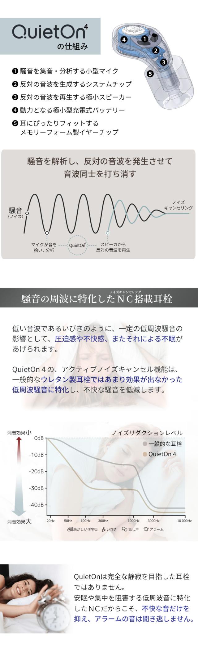 耳栓 デジタル耳栓 QuietOn 4 クワイエットオン 高性能 睡眠特化 ノイズアクティブキャンセル搭載 いびき対策 騒音対策 集中 安眠 イヤホン 在宅勤務 リモートワーク 勉強 睡眠 仮眠 休憩