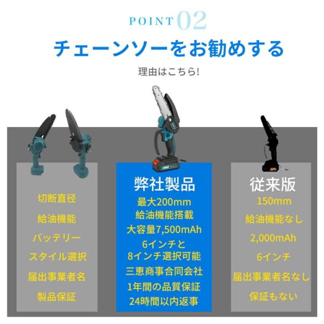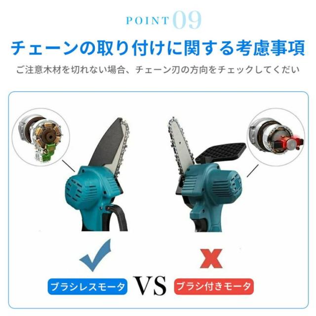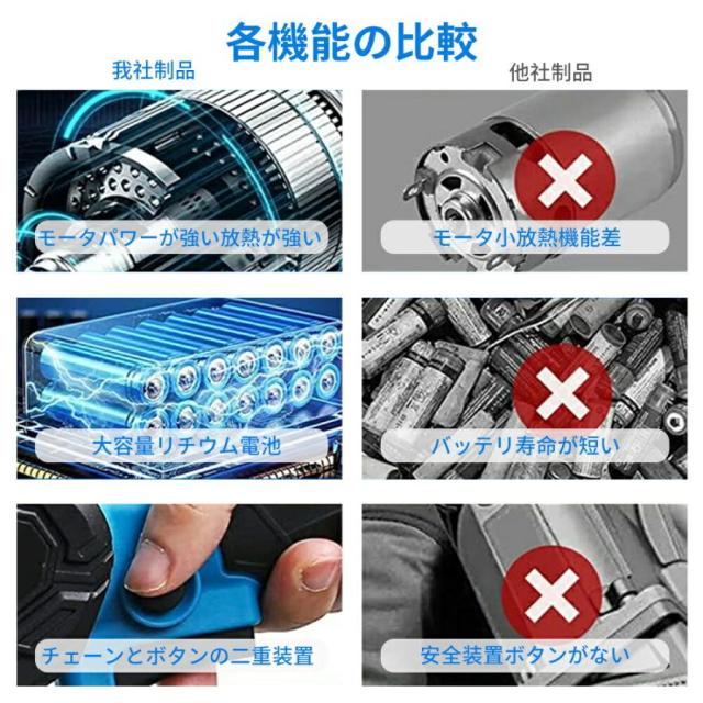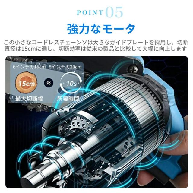 電動チェーンソー 充電式 電動ノコギリ 家庭用 小型電動のこぎり 片手軽量 強力 木工切断 枝切り 園芸設備 庭木 電動工具 4/6インチ マキタバッテリー互換対応