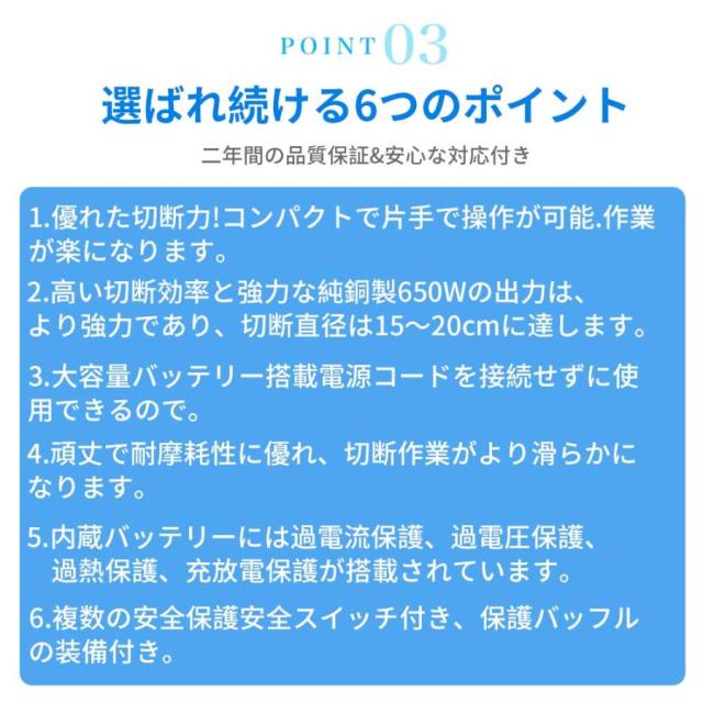 【用途】小型チェーンソーは小型で持ち運びが簡単で、電源コードや電源がない場所でも使用できます。女性でも簡単に操作?使用でき、長時間働いても疲れません