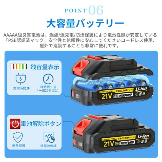 本製品は18Vのマキタバッテリーで駆動します。純正のバッテリーはもちろんのこと、各種互換バッテリーでも使うことができるので、MAKITAの掃除機や工具などをお使いの方ならすぐにご使用いただけます。
