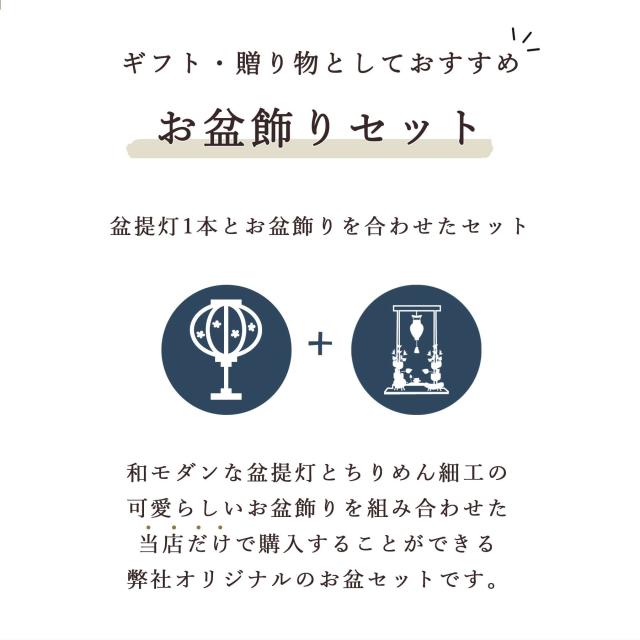 お盆提灯とちりめん細工のお盆飾りセットを合わせた、当店オリジナルのお盆セットとなります。