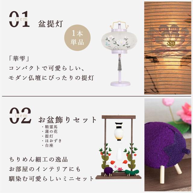 盆提灯 初盆 新盆 モダン 仏具 ちりめん細工 お盆飾りセット 精霊馬セット 精霊馬 精霊牛 岐阜の誉れ シリーズ 華雫 藤色 やまこう オリジナル 小型 和 仏壇 仏花 贈り物 神棚 神具 仏具 盆提灯 やまこう 山幸