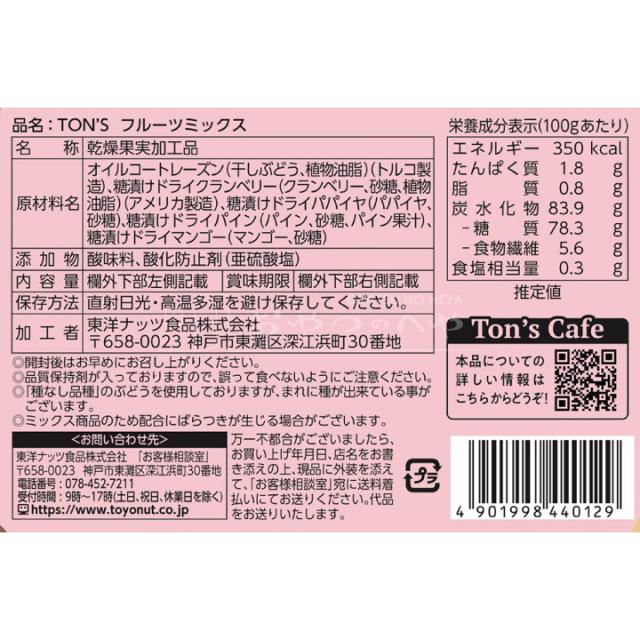 サルタナレーズン、クランベリー、パパイヤ、パイン、マンゴー