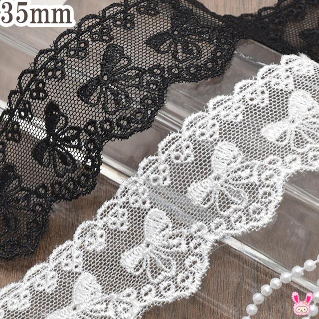 チュール生地に刺繍でスカラップやフリルの形を描いたレースリボンです。中央にはリボンモチーフのラインが入り、ガーリーで大人可愛い印象に。透け感のある素材は、重ね使いで雰囲気を自在に調整できます。小物や洋服の装飾はもちろん、ゴシック&ロリータ系の衣装作りにもぴったり。華やかさと繊細さをプラスしたいハンドメイドにおすすめです。
