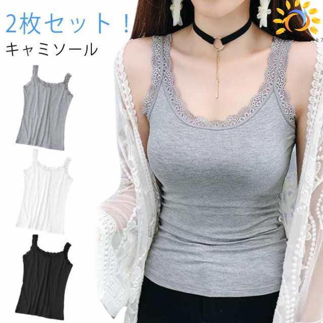 インナーキャミソール キャミソール タンクトップ インナー レディース 部屋着 ブラ紐隠しインナー レース 隠し ブラ紐 薄手 インナータンクトップ おしゃれ ノースリーブ tシャツ キャミ 無地 下着 肌着 2枚セット! 伸縮 重ね着