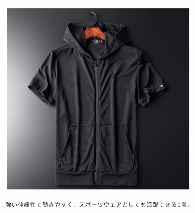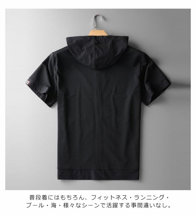 半袖 スポーツ メンズ フード付き アウター 通気性 フード付き ジップアップパーカー 夏服 パーカー ドライ 半袖パーカー 夏 アウトドア 羽織り トップス シンプル おしゃれ 薄手 ジップパーカー 春 夏 吸汗速乾 M L XL 2XL メッシュ