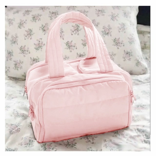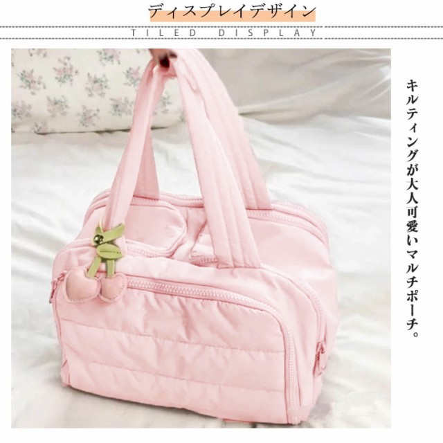 | 化粧水・メイク道具や小物を整理して収納できる化粧ポーチ。 キルティングが大人可愛いマルチポーチ。 シンプルなつくりに、ファスナーで大きく開く口が使いやすい! 取っ手付きで持ち運びにもgood♪ デイリーはもちろん旅行などにもいいですね☆ | |