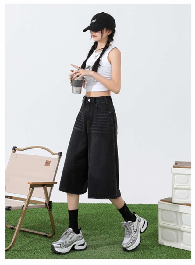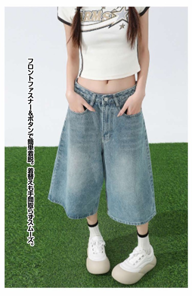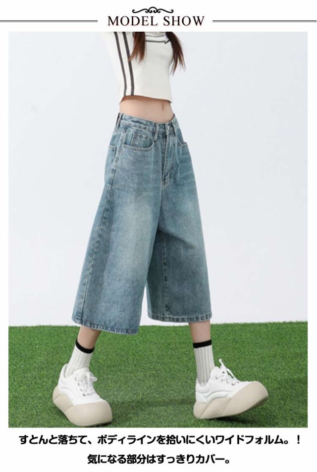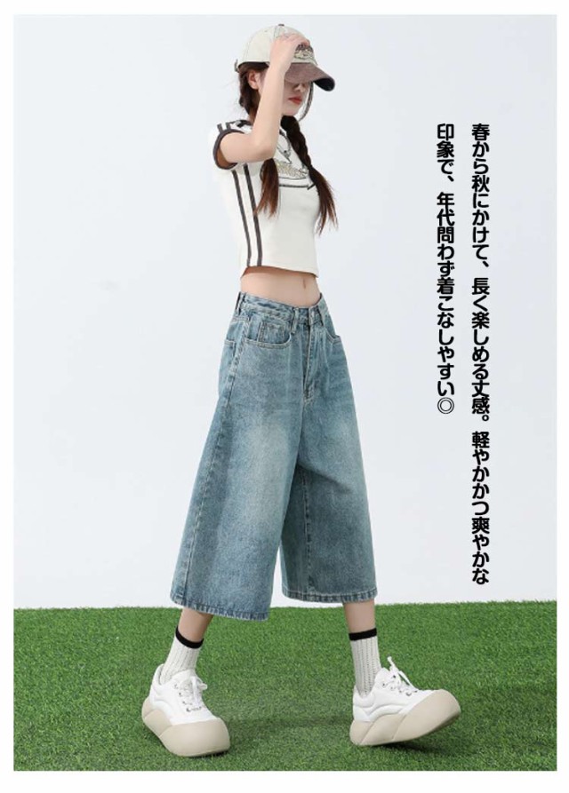 7分丈 ジーンズ ワイドパンツ デニムパンツ 膝下丈 レディース 送料無料 カジュアル ジーパン ストレートパンツ クロップドパンツ デニム 七分丈 夏 秋 無地 女性 送料無料 シンプル お腹 太もも お尻 通勤