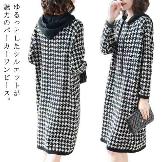 フード付き ロング レディース 秋 ワンピース スウェット チェック柄 パーカー パーカーワンピース 春 秋 冬 ロングパーカー ワンピース トレーナー 秋ワンピ 体型カバー ゆったり 無地 長袖 体型カバー カジュアル 大人 ゆるっと