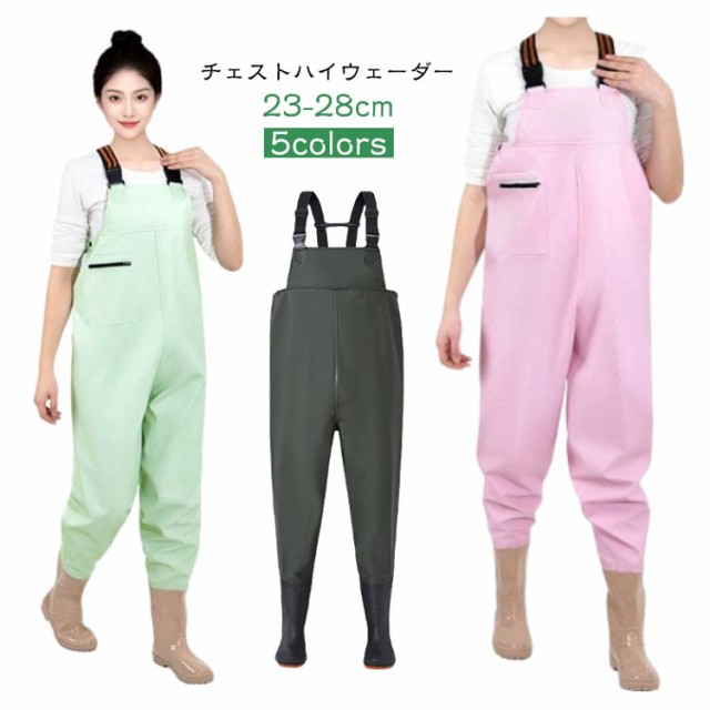 チェストハイウェーダー レディース 潮干狩り レディース 防水 胴長 掃除 水仕事 釣り フィッシングウェーダー メンズ 胴付き長靴 女性用 漁業 作業用 ウェーダー 農作業 チェストハイ ポケット 渓流 海 田植え 水産業