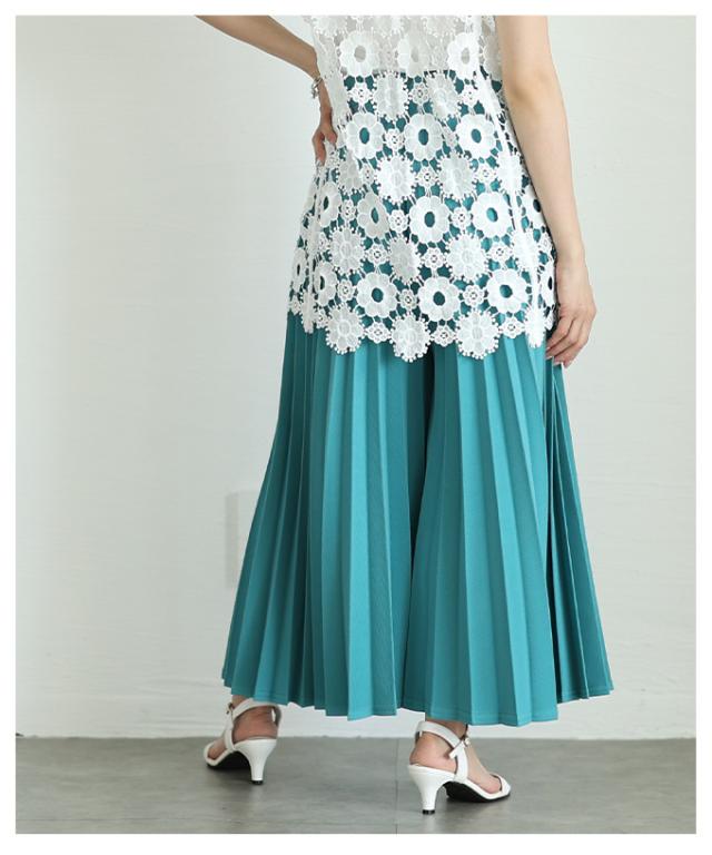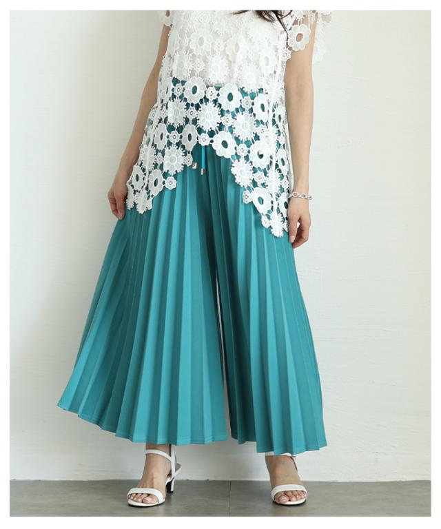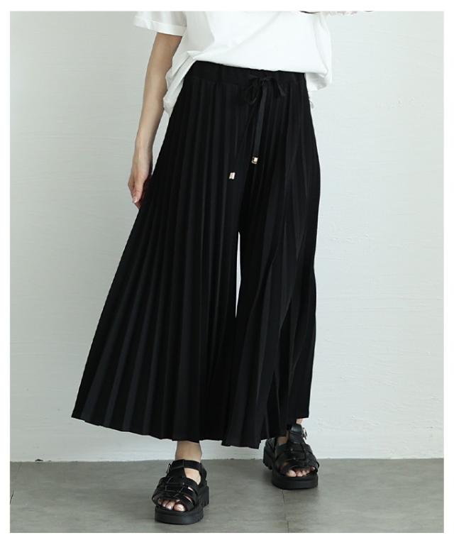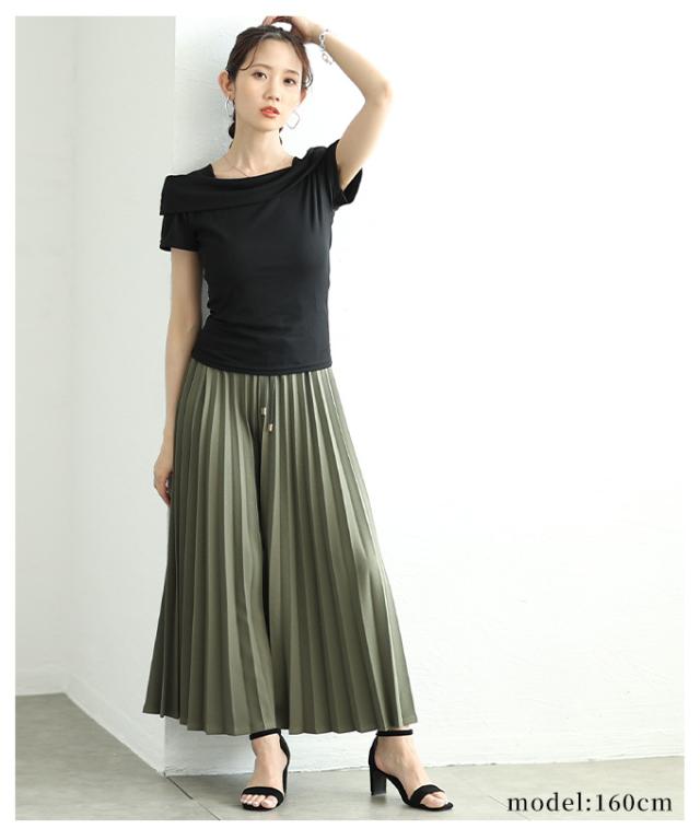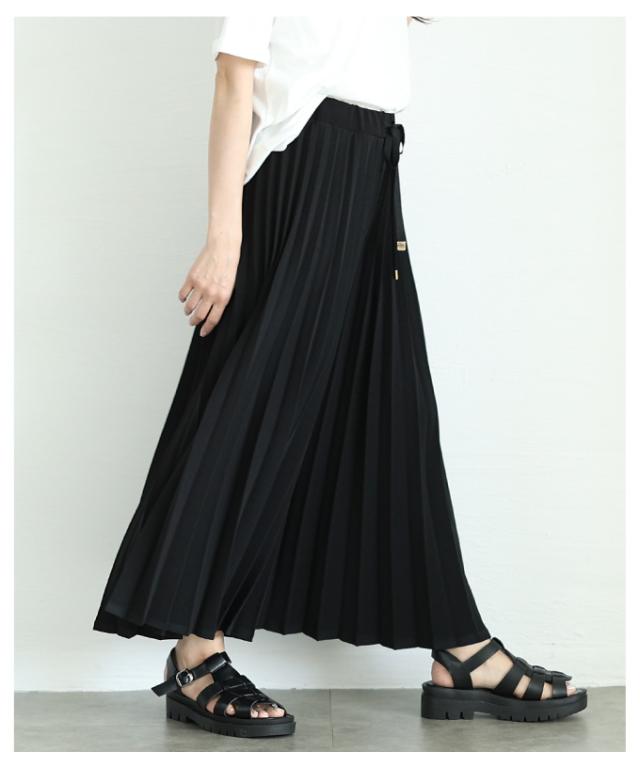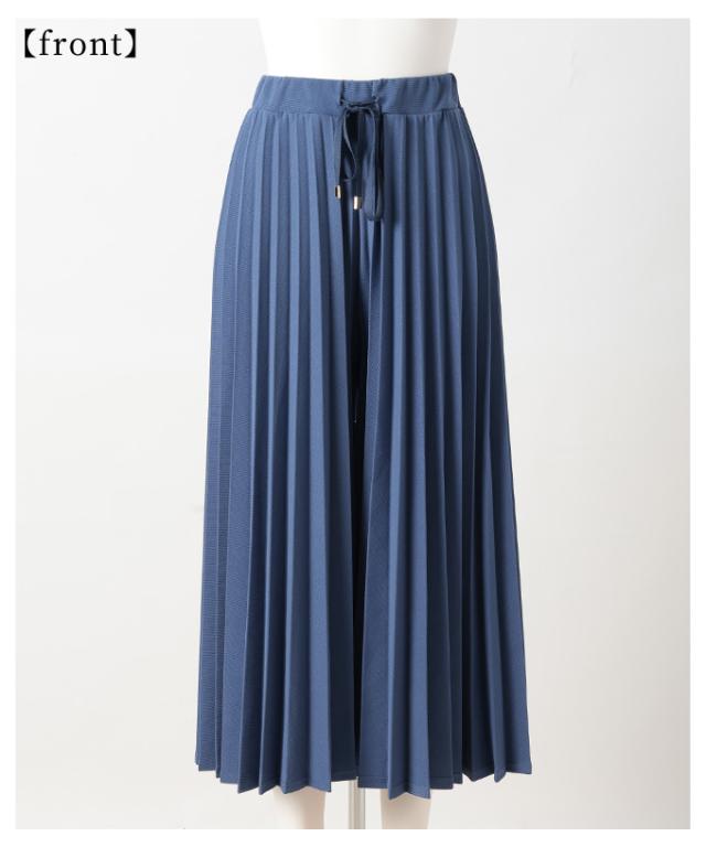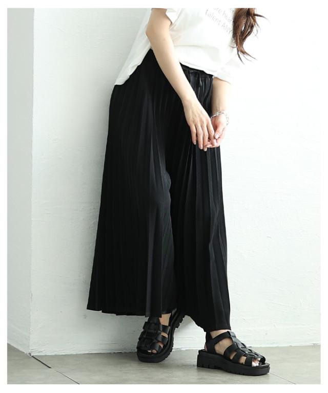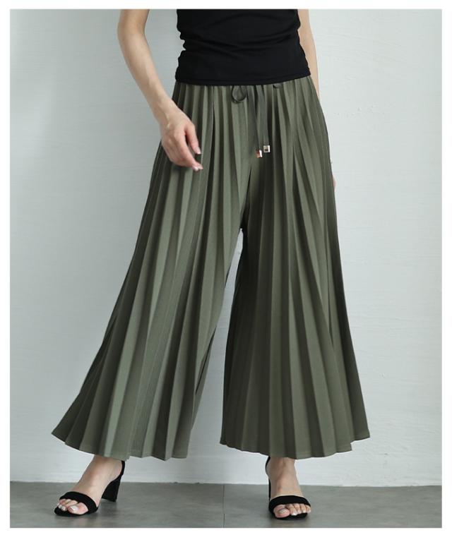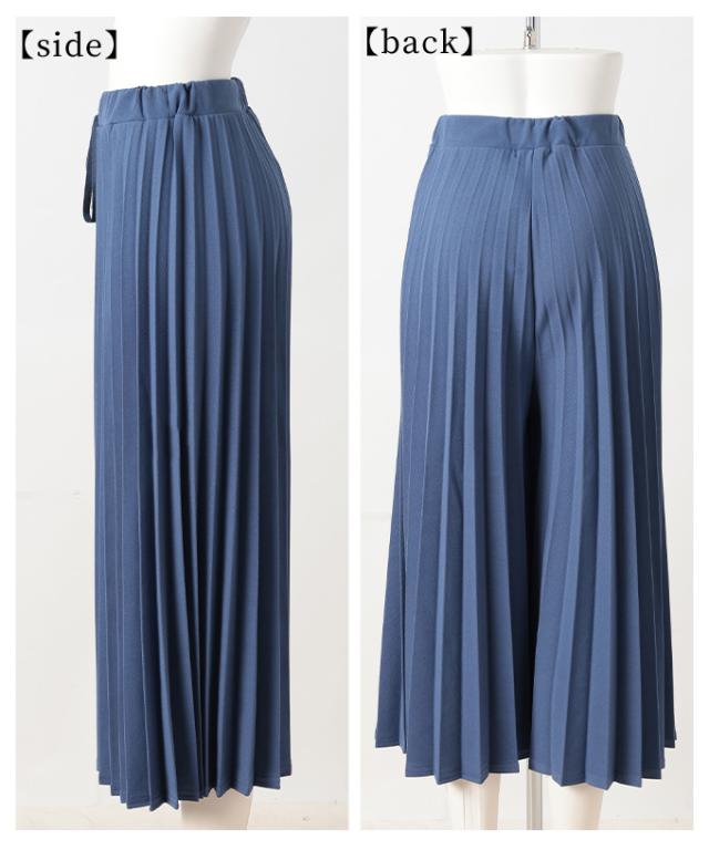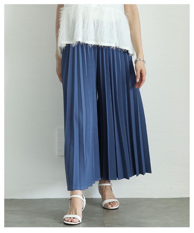 春新作 スカート見えで品良く広がるプリーツガウチョパンツ レディース ファッション パンツ プリーツ ガウチョ フレア ワイド ロング ウエストゴム 無地 30代 40代 50代 60代 サワアラモード sawaalamode otona 大人 cawaii 可愛い 洋服 かわいい服 almam-780