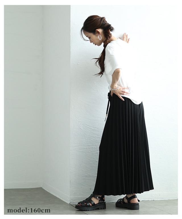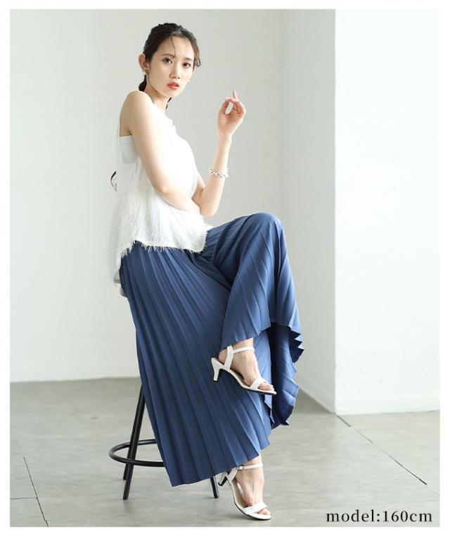 特徴: プリーツ ウエストゴム ドロスト フレア