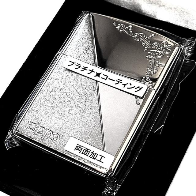 ZIPPO ライター アーマー プラチナシルバー アラベスク ジッポ ロゴ 鏡面 両面加工 かっこいい 彫刻 おしゃれ シンプル 高級 銀 メンズ ギフト プレゼント