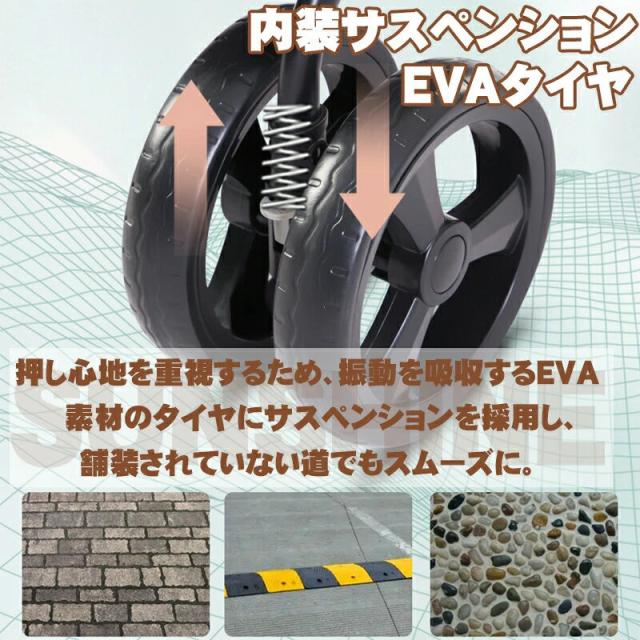 前輪に直進レバー付き、360°回転も可能、方向転換が簡単になります。