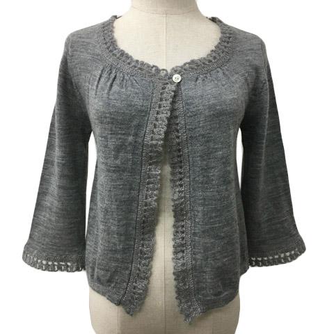 【中古】テチチ Te chichi カーディガン ニット 無地 ウール モヘヤ混 七分袖 グレー レディース