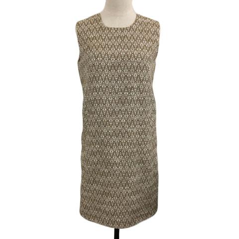 【中古】エージーバイアクアガール ワンピース Iライン ミニ ラウンドネック 総柄 タック ノースリーブ M 茶 白