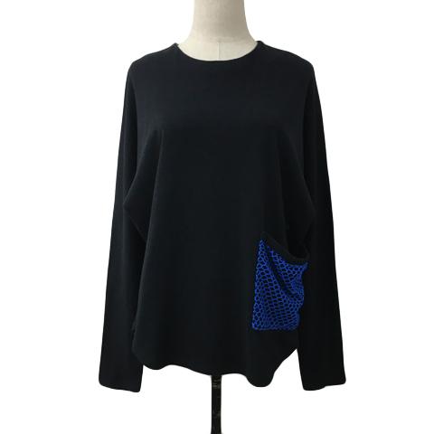 【中古】レアセル カットソー Tシャツ プルオーバー ラウンドネック 刺繍 ドルマンスリーブ 長袖 S 黒 青 ブラック