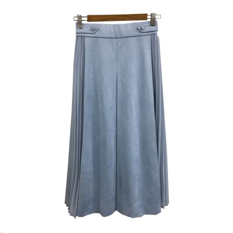 【中古】グローブ スカート フレア プリーツ ロング ウエストゴム 無地 切替 スウェード調 シフォン S 水色