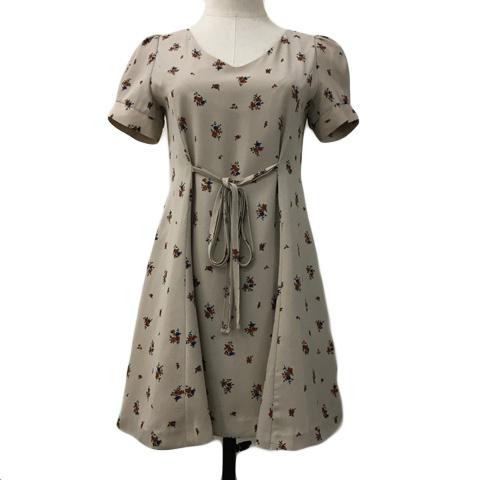【中古】マーキュリーデュオ ワンピース Aライン フレア ミニ 花柄 リボン 半袖 F ベージュ 赤 レッド レディース