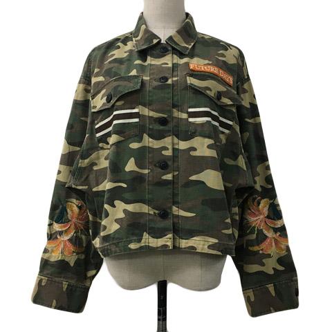 【中古】マウジー ジャケット ブルゾン ミリタリー スタンダード 迷彩 カモフラ 刺繍 プリント ロゴ 長袖 F 緑 茶