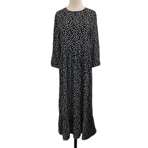 【中古】ザラ ワンピース フレア ギャザー ロング ティアード ドット 総柄 長袖 USA XS 黒 白 ブラック ホワイト