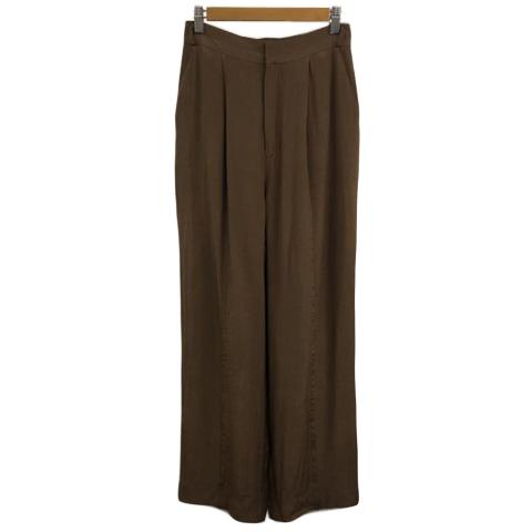 【中古】レイビームス パンツ ワイド ロング センターシーム ウエストゴム 光沢 無地 0 茶 ブラウン レディース