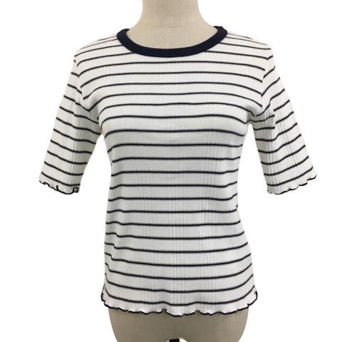 【中古】ニコアンド カットソー ニット ラウンドネック ボーダー リブ メロウ 五分袖 M 白 黒 ホワイト ブラック