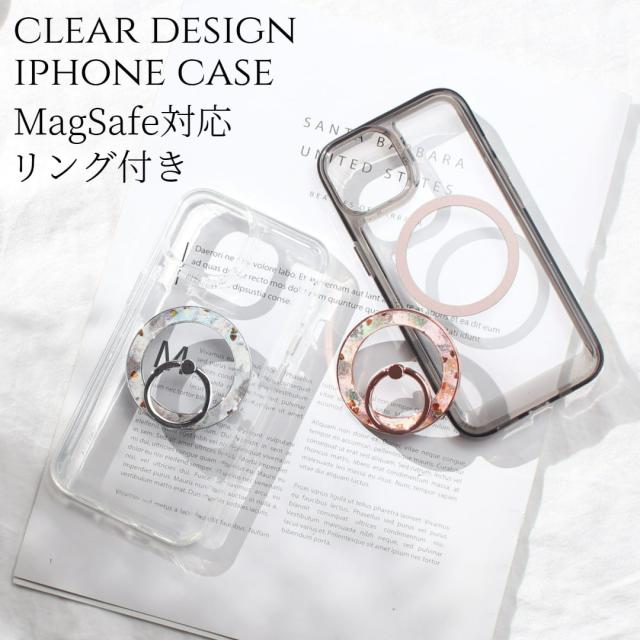 iphoneケース クリア リング付き iphone16 iphone15 iphone14 13 12 pro リング ホルダー 花柄 大人可愛い アイフォン 13mini 12mini マグセーフ対応 magsafe SE スマホリング きらきら クリアケース 16pro 15pro 14pro 16 15 14 plus 11 透明 se2 se3 スタンド 送料無料