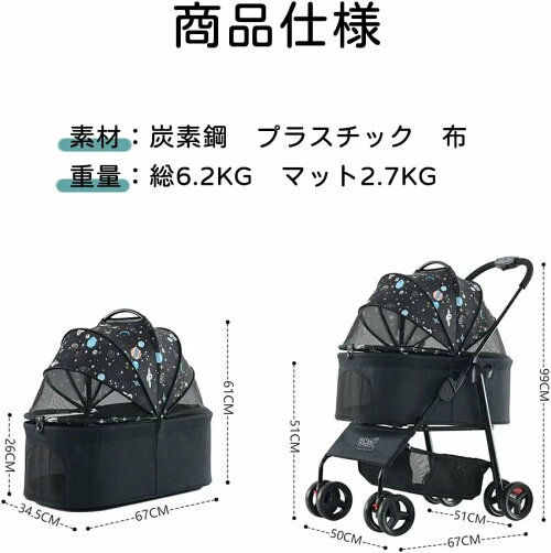 ペットカート 分離 取り外し 4輪 折りたたみ 飛び出し防止 収納 ペット 犬カート 犬用カート ペット用カート 中型 軽量 散歩 ペットキャリ おしゃれ 多頭用 前輪360° 後輪ストッパー付き 犬介護用カート 猫用ベビーカー 組み立て簡単 犬 小型犬 中型犬 子犬 猫 犬