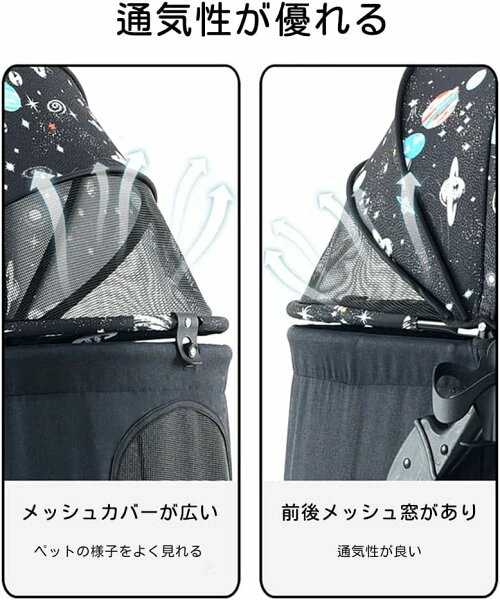 【通気性がよい】上にメッシュ窓を備えており、ペットの顔出しが可能になります。メッシュ部分は通気性と可視性に優れており、爪で引っ掻いても破けにくくなっております。前方、後方、上から空気が流れ込みやすい構造をしており、中に虫が入ることもなく快適な空間となっております。