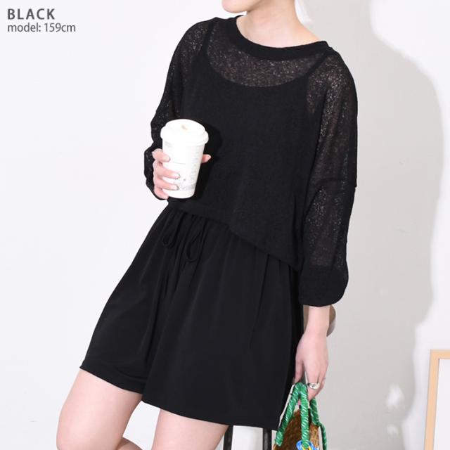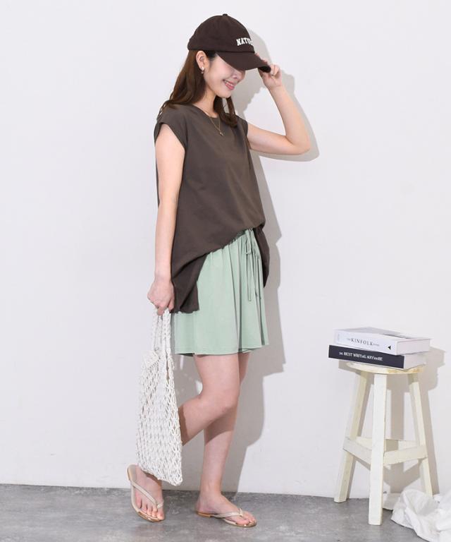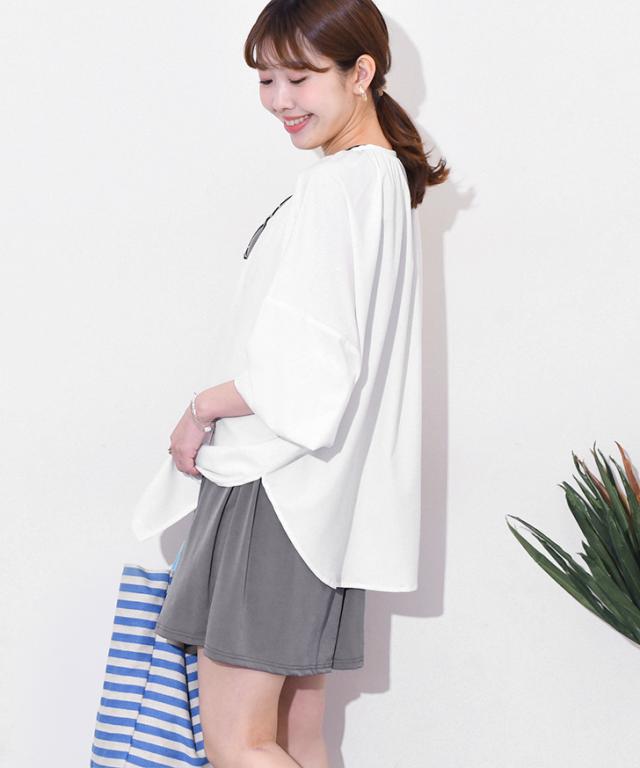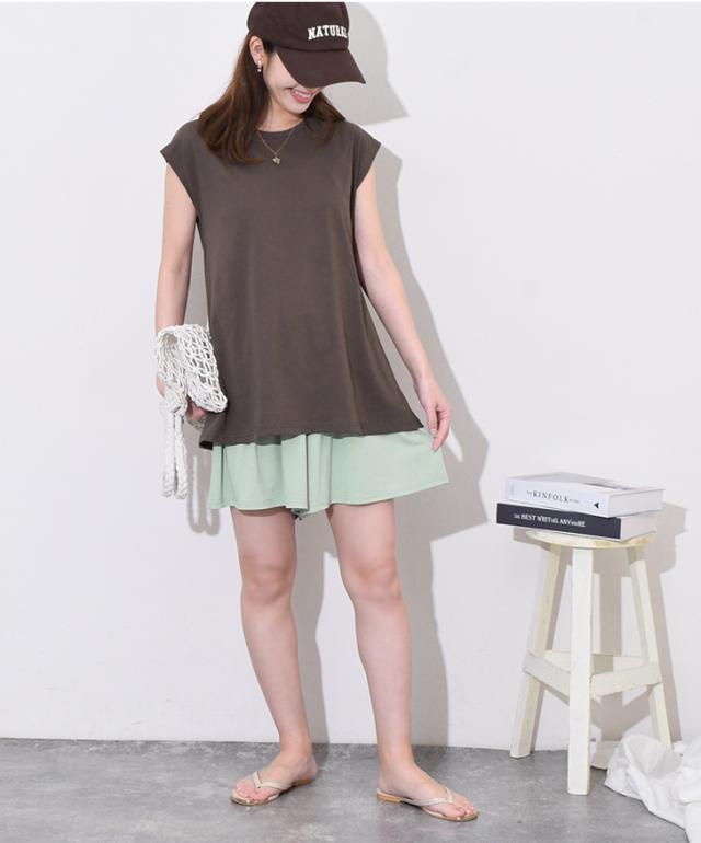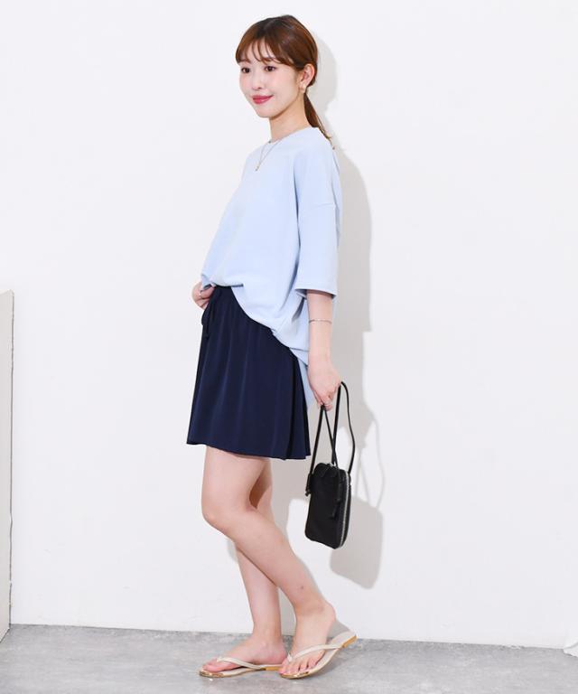 コメント:太ももが隠れる丈なのが嬉しいです。生地もサラっとしているので快適に着用できました。