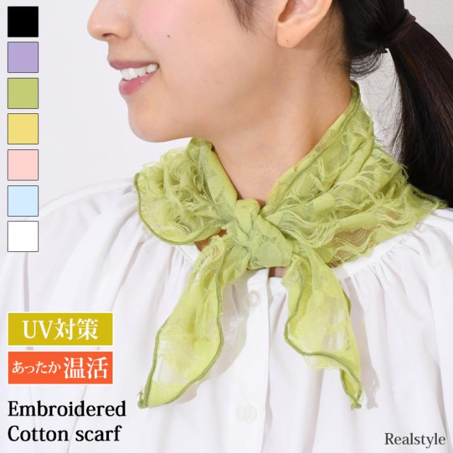 新作 スカーフ バンダナ ネックカバー 付け襟 つけ襟 レディース 夏 冷房対策 薄手 シースルー シアー 綿 コットン 三角 花柄 おしゃれ