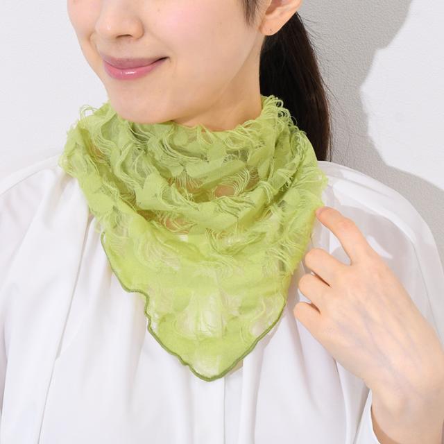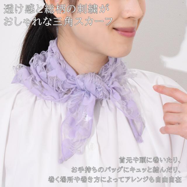 透け感と総柄の刺繍がおしゃれな三角スカーフ