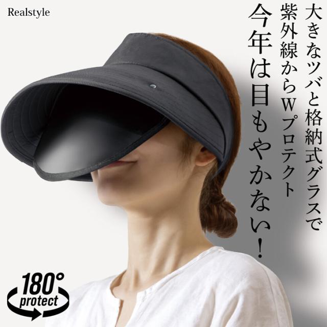 180度日差しをブロック!グラス付きサンバイザー