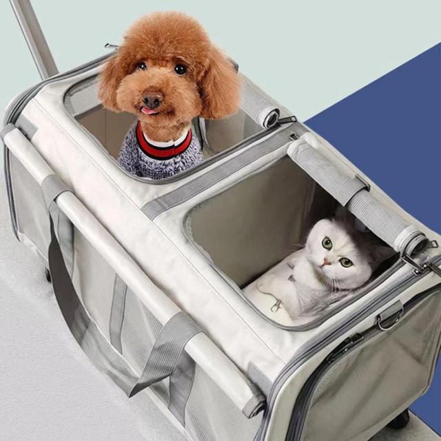 ペットカート 分離 取り外し 4輪 折りたたみ 飛び出し防止 収納 ペット 犬カート 犬用カート ペット用カート 中型 軽量 犬 小型犬 子犬 猫 犬 散歩 ペットキャリ おしゃれ 多頭用 猫用ベビーカー 組み立て簡単 後輪ストッパー付き 犬介護用カート