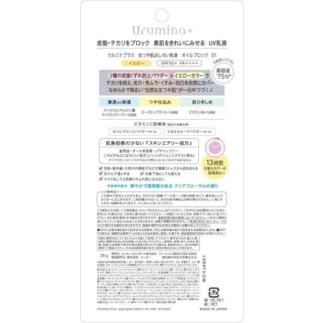ウルミナプラス 生つや肌 おしろい乳液 イエロー 35g 1個 朝用乳液 化粧下地 コーセーコスメポート 凹凸を自然にカバー 透明感のある 立体生つや スキンケア 毛穴 くすみ 色むら 紫外線カット SPF50+ PA++++ 日焼け止め