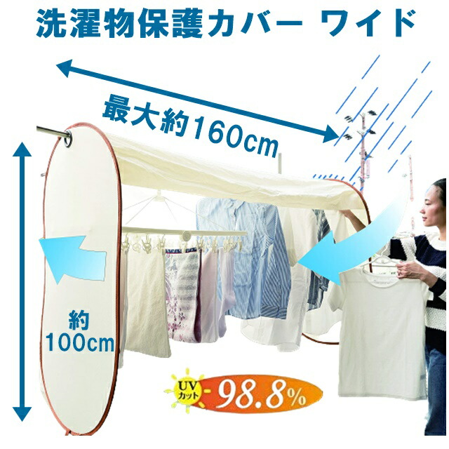 洗濯物カバー 花粉 対策 雨よけ 目隠し UVカット 物干しカバー ガード 紫外線焼け 防止 ベランダ雨よけ 陰干し 花粉対策 鳥対策洗濯物保護カバー UVカット生地 屋外 洗濯日和 ネクスト ワイド 日焼け防止 強いひざし 保護 スベリ止めテープ付き 約160×60×100cm
