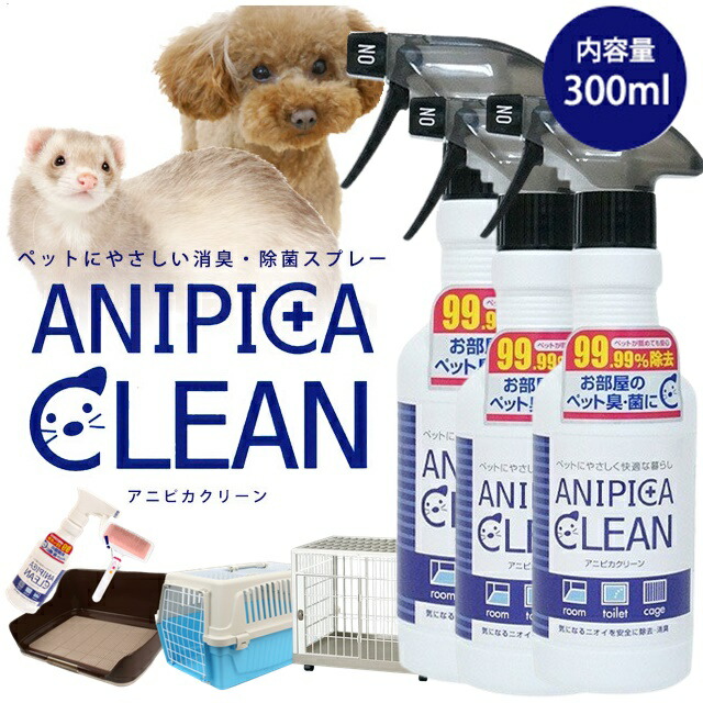 3個セット 除菌消臭後に水になる 強力な消臭力 犬 猫 ペット 消臭スプレー 消臭水 消臭 消臭液 ふん尿 トイレ 汚物 除菌 ケージ ゴミ箱 ペットシーツ 砂 オシッコ 掃除 マーキング防止 アンモニア臭 おもちゃ除菌 アニピカクリーンスプレー300mlサロン ブリーダー愛用