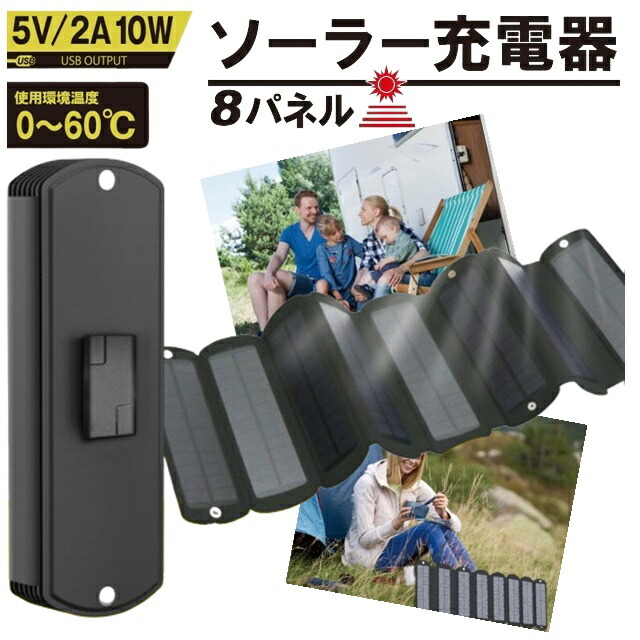 ソーラー充電器 8パネル 太陽電池 防災グッズ ソーラーチャージャー ソーラー バッテリー カメラ 防災 充電 携帯 モバイルバッテリー 蓄電 充電器 登山 海 山 川 海外旅行 バカンス 砂浜 リゾート スマホ 充電器