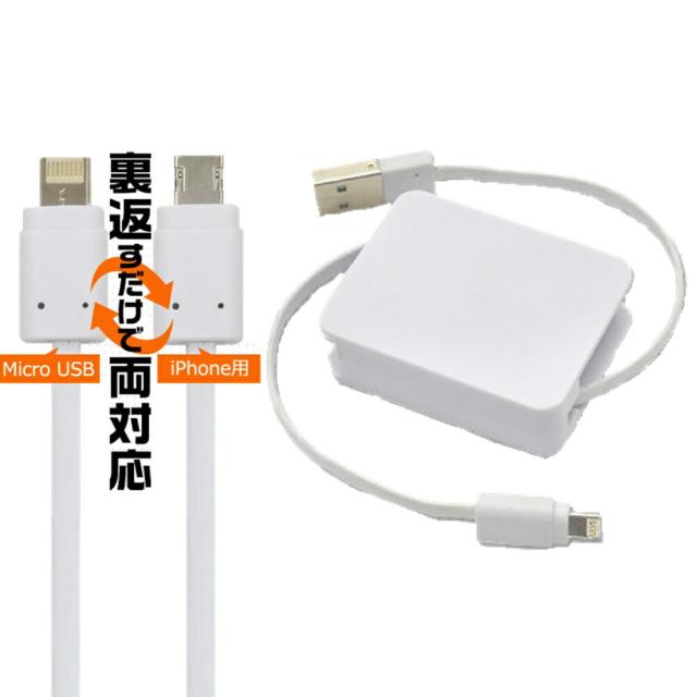 巻き取り式 充電ケーブル iPhone Micro USBケーブル 同時充電 充電 ケーブル 携帯用 ライトニングケーブル 急速充電 データ転送 USB コード