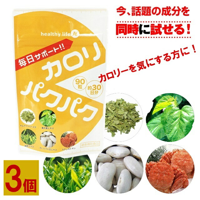 3個セット カロリーカットサプリ カロリパクパク ダイエットサプリ カロリー ダイエット サポート サプリメント カロリー サプリ カロリーコントロール カロリミット との比べ 美容サプリ ギムネマシルベスタエキス 桑の葉 キトサン 緑茶エキス 白いんげん豆エキス