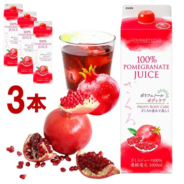 お試し1か月分 3本セット 1本にざくろ果実約15個分 ざくろジュース ザクロ 1000ml 1L 濃縮還元 果汁100% ざくろ ザクロ ザクロジュース 無添加 ポリフェノール 添加物不使用 ざくろ 日本生産 女性 更年期 妊活 美容 ドリンク 飲料 ーチュイン 生理不順 更年期 サーチュイン