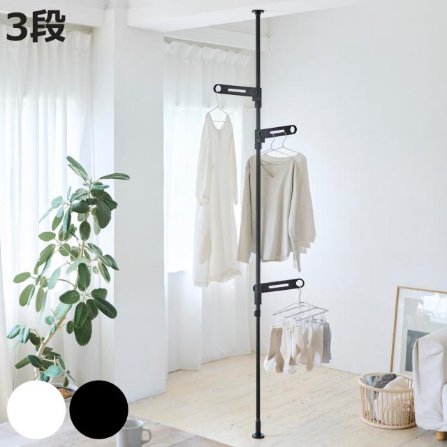 スリムで場所をとらない突っ張り物干し3段タイプです。マットな質感がオシャレでシンプルデザインなのでお部屋に馴染みます。