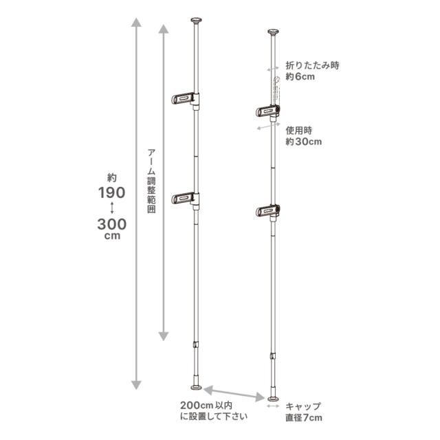 | サイズ | 約 奥行30×高さ190〜300(cm) 取付け高さ範囲:約 190〜300(cm) |