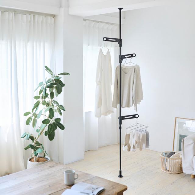スリムで場所をとらない突っ張り物干し3段タイプです。マットな質感がオシャレでシンプルデザインなのでお部屋に馴染みます。