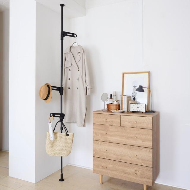 スリムで場所をとらない突っ張り物干し
