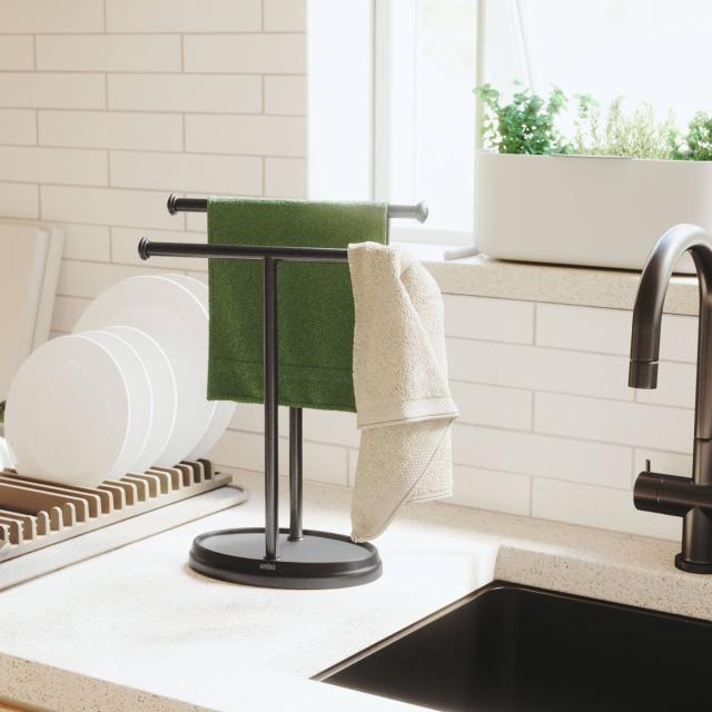 Umbra パーム ダブルタオルツリー ( アンブラ タオル掛け タオルバー スタンド ハンドタオル タオル 収納 ホルダー 洗面 浴室 バスルーム シンプル おしゃれ タオルハンガー 自立型 キッチン リビング トレー付き ホテルライク )